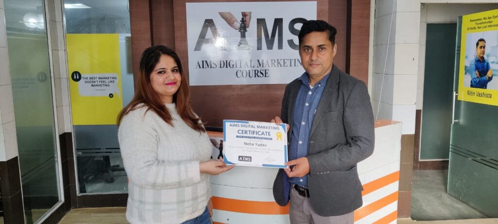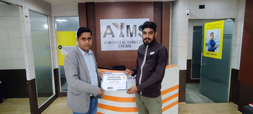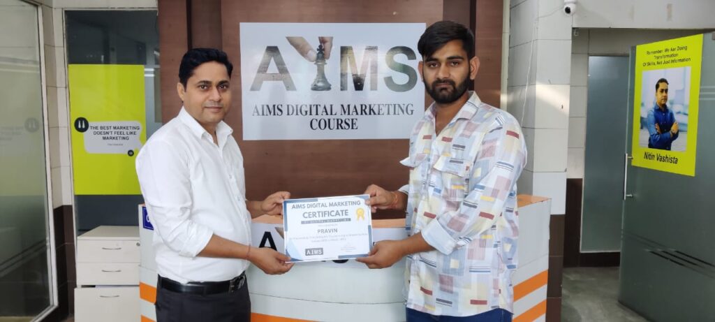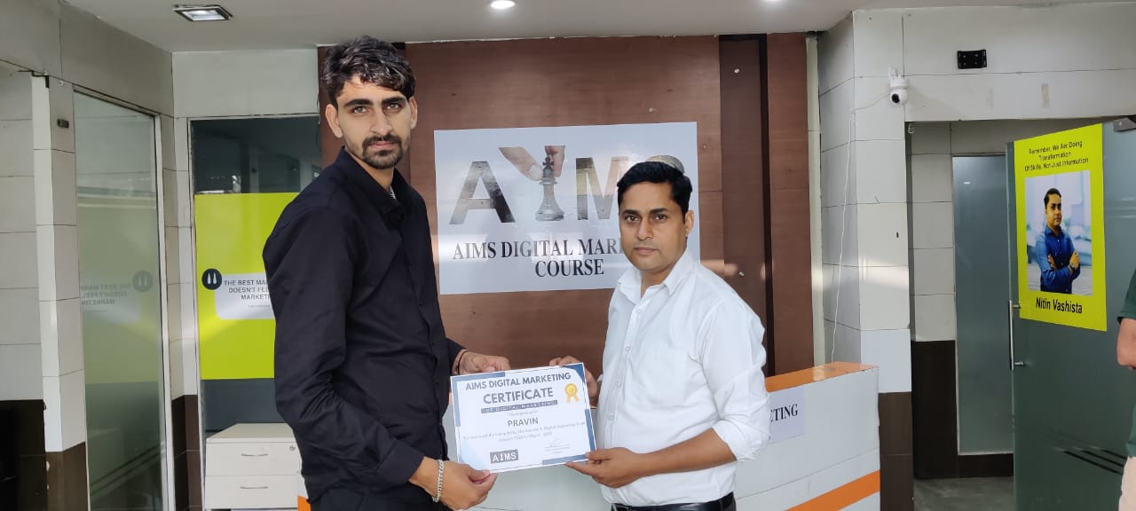 - Abhishek – Enrolling myself in AIMS digital marketing was my good Decision I have ever took. I come up here by Google Search .My Experience with Aims Digital marketing has been truly remarkable. Under the mentorship of Mr. Nitin Sir , I have learned in detailed about Digital Marketing , including Social media marketing , Search engine optimization (SEO) , Google Ads , Web Designing , Email Marketing and more. During this course I have gained valuable insights and have also worked on live projects. I recommend AIMS Digital marketing if anyone who is interested in making career in this field.